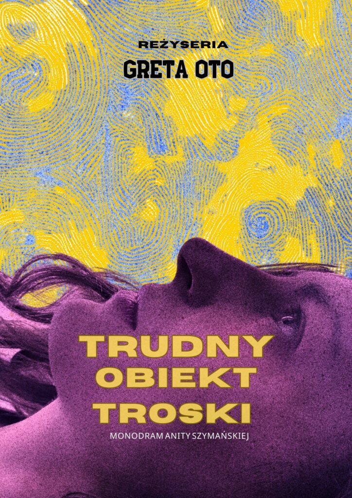 „Trudny Obiekt Troski” to monodram Anity Szymańskiej w reżyserii Wiktora Stypy (duet Greta Oto). To intymna, ironiczna i poruszająca opowieść o młodej kobiecie, która w obliczu śmierci babci musi zmierzyć się z nieprzepracowanymi relacjami rodzinnymi, własną żałobą i rozpadającym się związkiem. Pomiędzy potrzebą bliskości a lękiem przed zależnością bohaterka po raz pierwszy próbuje naprawdę usłyszeć swój głos i zdecydować o sobie.